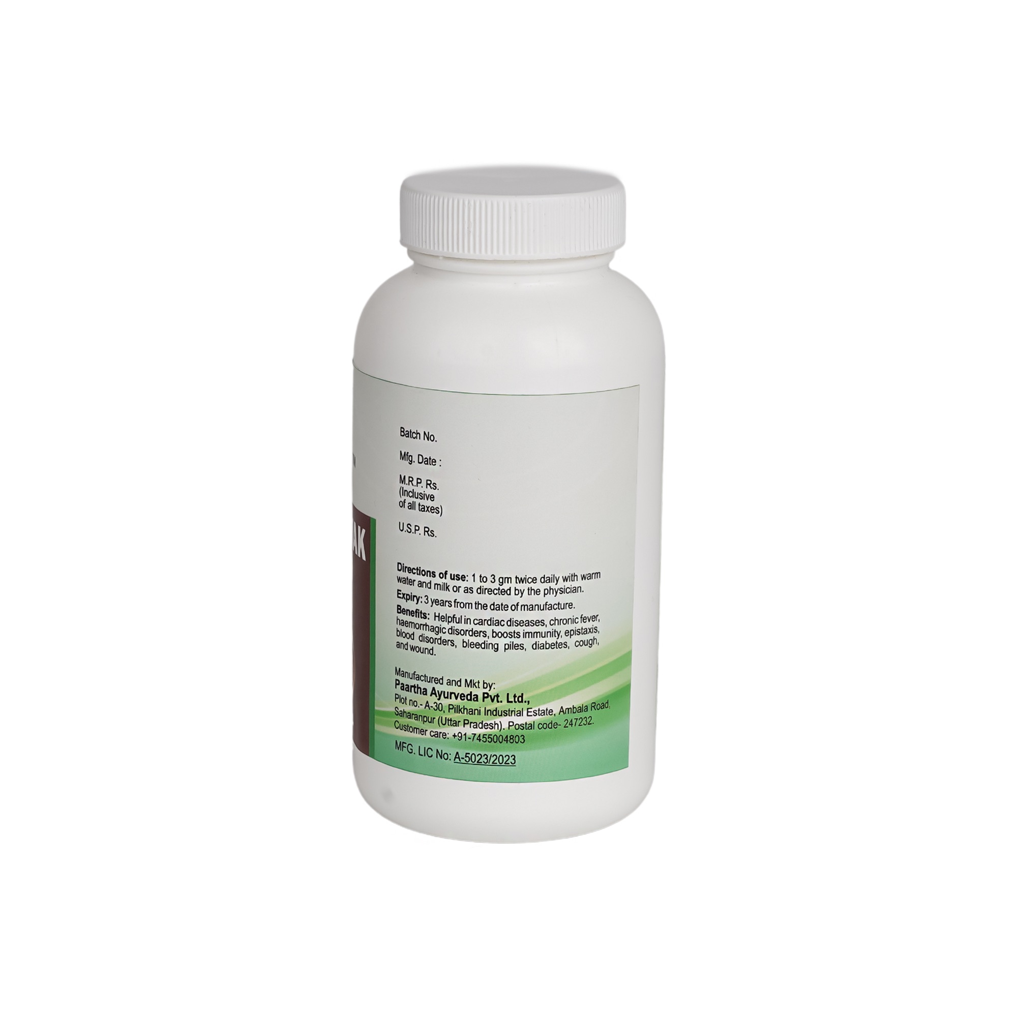 Arjun Twak Churan works by nourishing cardiac muscles and supporting efficient blood circulation. Its natural phytochemicals help strengthen blood vessels and support healthy clotting mechanisms, making it useful in bleeding-related conditions.